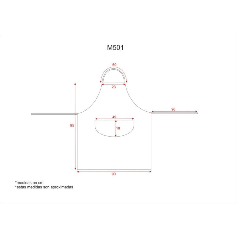 -Material nitrilo.-Arnés regulable.-Largo aprox.: 115 cm.-Limpieza Delantales: Lavar y cepillar el delantal en agua jabonosa caliente (40ºC) o en una mezcla de agua y detergente suave. Enjuague con agua. No se utilizará productos tóxicos para limpiar o enjuagar el delantal. Después de limpiar, almacenar en un lugar seco oscuro y bien ventilado. El delantal debe ser reemplazado cuando presenta señales de desgaste.