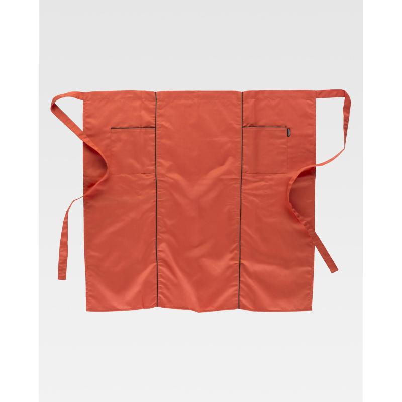 Delantal francés extralargo combinado. Dos bolsos laterales y cortes decorativos rematados con vivos a contraste. Tiras para ajustar en la cintura. 90X85 cm. 85% Poliéster 15% Viscosa