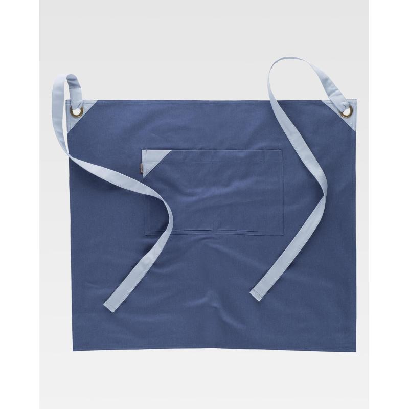 Delantal francés largo en tejido canvas combinado. Un bolso central de plastón compartimentado. Cintas para ajustar en la cintura. Diseño contemporáneo con remaches de cobre. 87% Algodón 12% Poliéster 1% Elastano