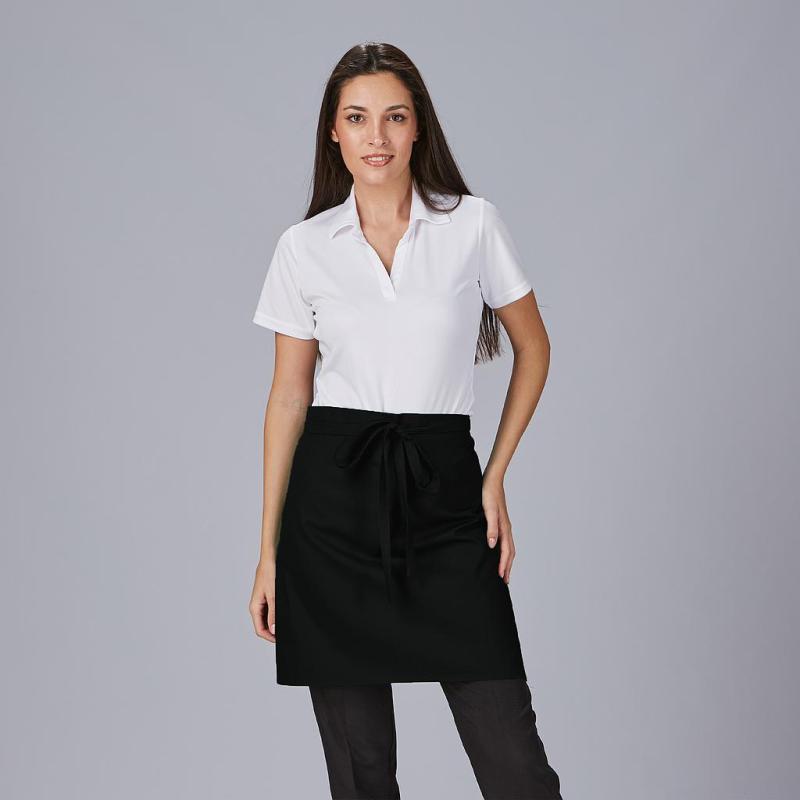 -Sistema de cierre mediante tiras para anudar en costados.- Tira de cuero con botones de presión.-3 bolsillos en delantero.-Largo aprox.: 82 cm.