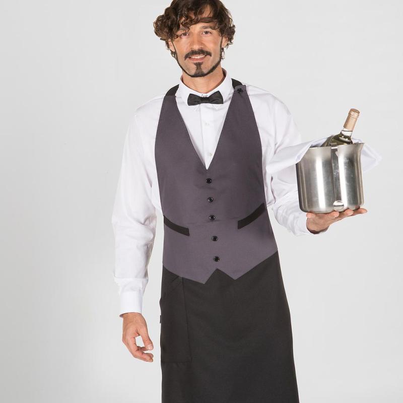 El diseño único imita un chaleco, añadiendo un toque sofisticado al uniforme de camareros, chefs y personal de comercio. Además, el bolsillo delantero derecho proporciona un espacio práctico para guardar pequeños utensilios esenciales durante tu jornada laboral.