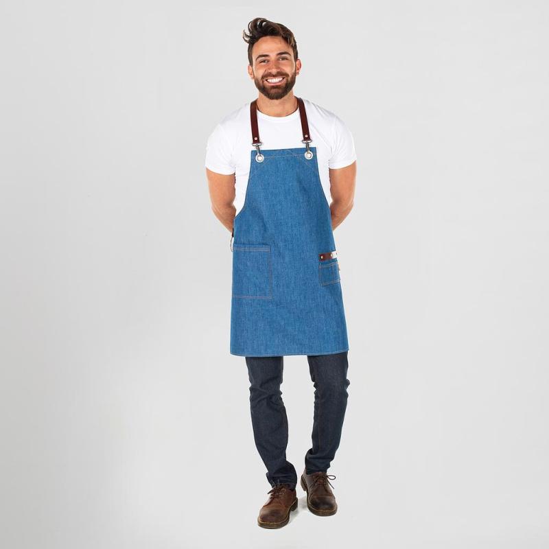 Con tres bolsillos delanteros, una anilla para el paño de cocina y una tira de piel para utensilios, el Delantal con Peto Colorado es la elección ideal para cocineros, camareros, pinches de cocina y profesionales de la industria alimentaria. Las tiras de ajuste en piel, con enganches mediante mosquetones, hebillas, arandelas y ollados, garantizan un ajuste cómodo y personalizado.