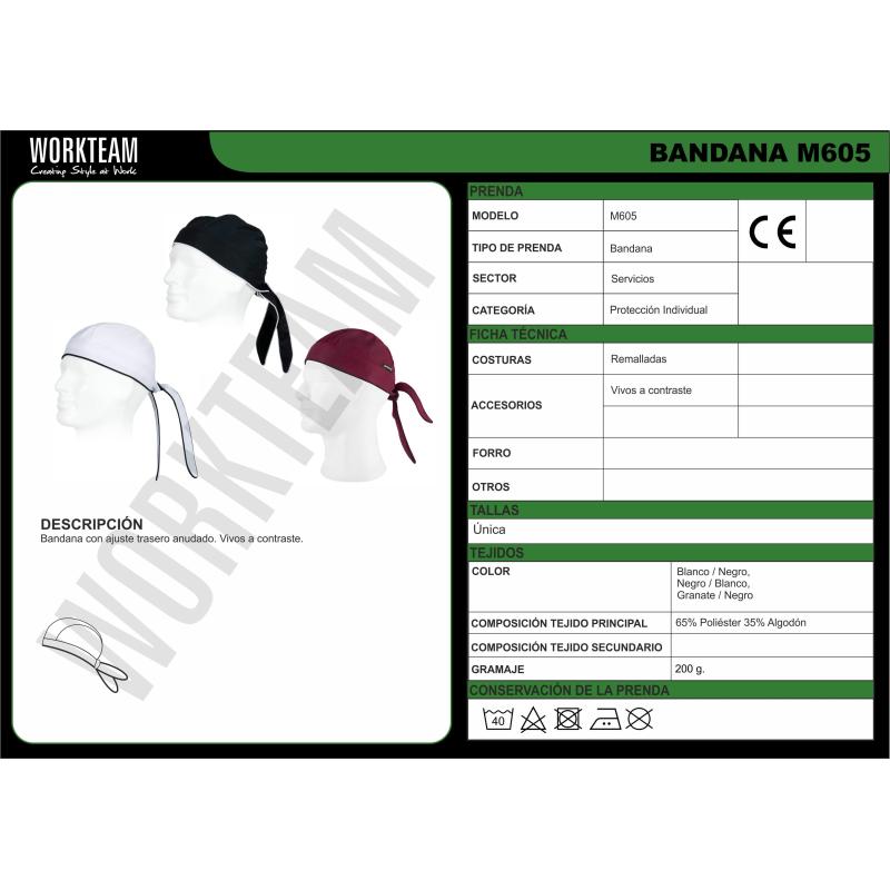 Bandana con cinta ancha para ajustar en la nuca rematada con vivos a contraste. 65% Poliéster 35% Algodón