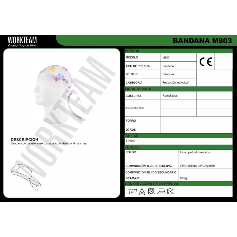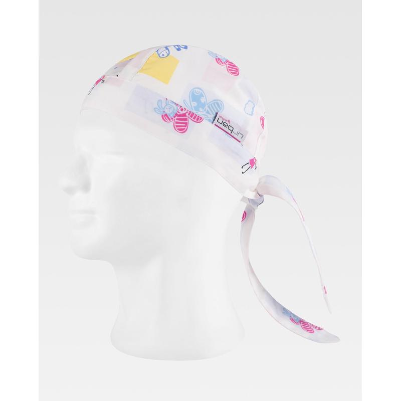 Bandana estampada con motivos infantiles y acabado antimanchas. Rematada con cinta ancha para ajustar en la nuca. 65% Poliéster 35% Algodón