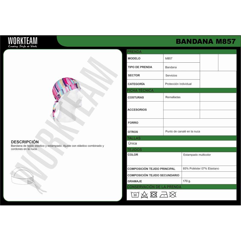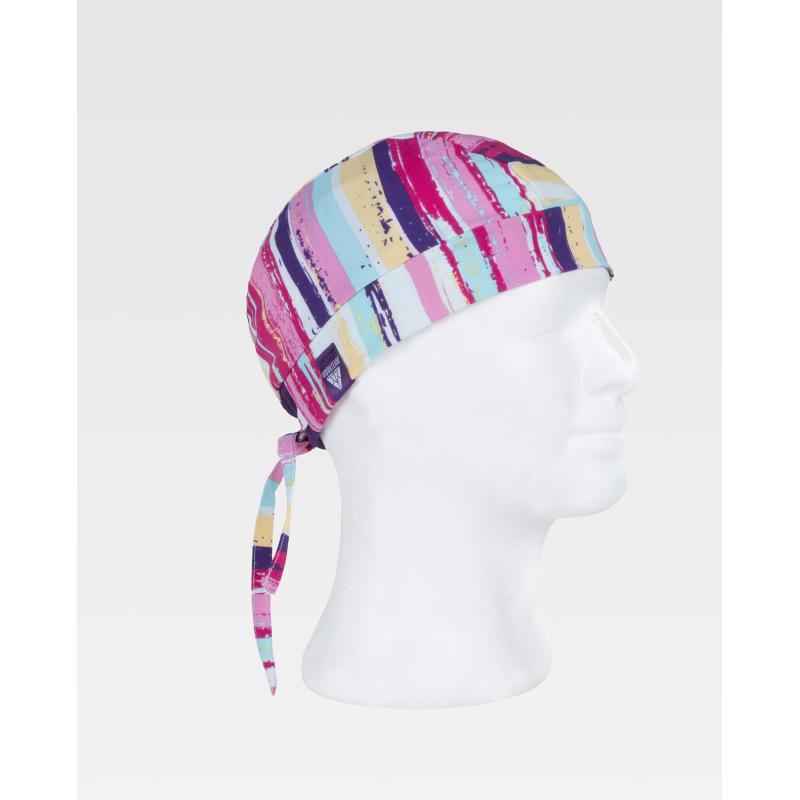 Bandana de tejido elástico y estampado. Ajuste con elástico combinado y cordones en la nuca. 93% Poliéster 7% Elastano
