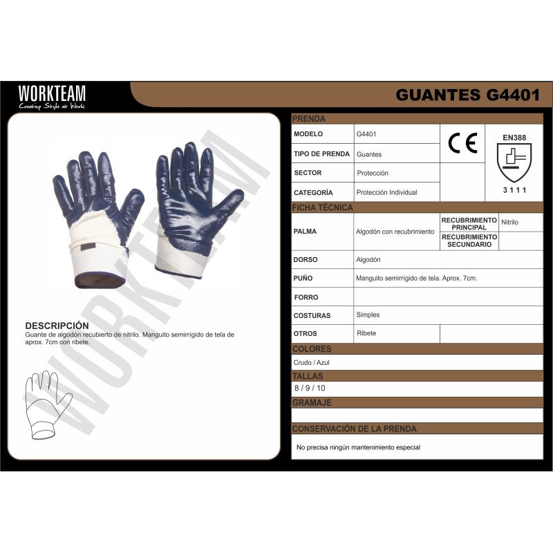 Guante recubierto de nitrilo. Dorso fresco de algodón. Puño de seguridad. Nitrilo