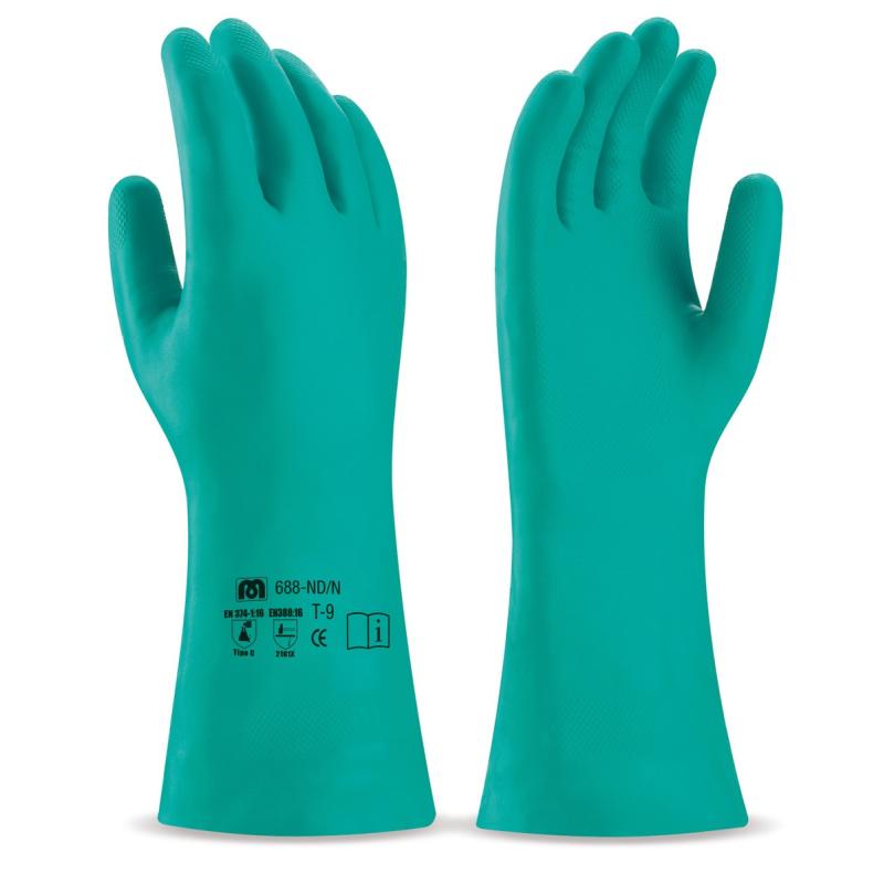 Aplicaciones: Protección Mecánica y Química. Interior de algodón flockado y recomendado para alta protección química, desengrasado, disolventes, aceites, pinturas y barnices, disolventes. También para la manipulación de alimentos.