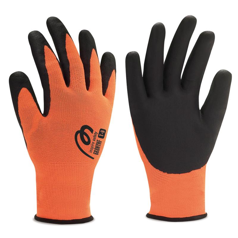Guante de poliamida y licra naranja recubierto de espuma de nitrilo 7