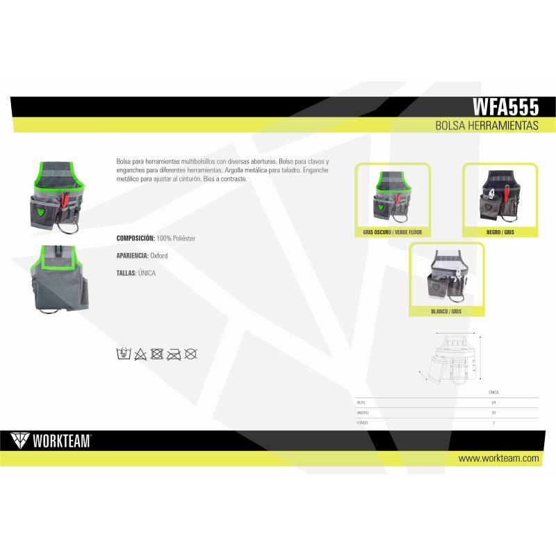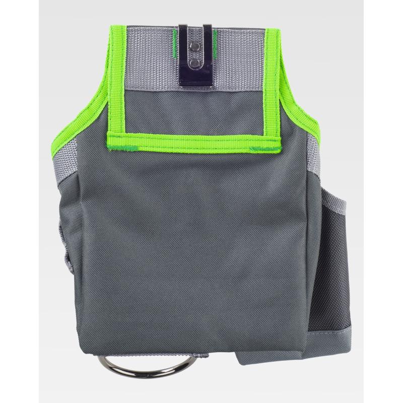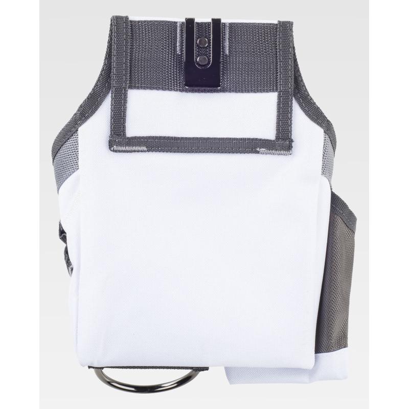 Bolsa para herramientas multibolsillos con diversas aberturas. Bolso para clavos y enganches para diferentes herramientas. Argolla metálica para taladro. Enganche metálico para ajustar al cinturón. Bies a contraste. Dimensiones: 24x20x7 cm aprox. 100% Poliester