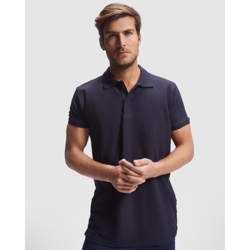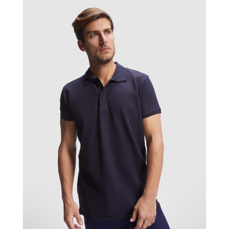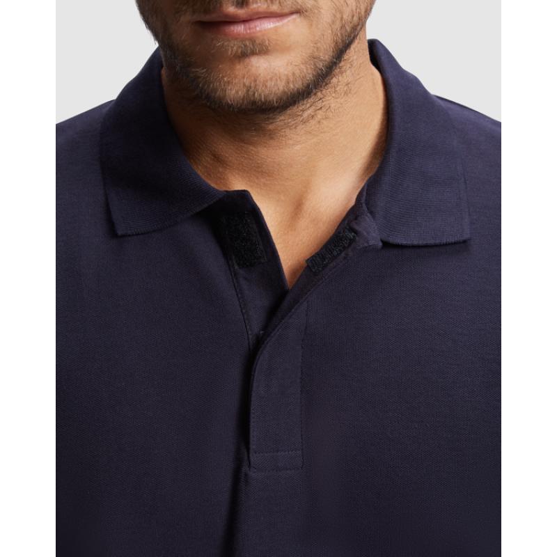 Polo manga corta de piqué. · Cuello y mangas en rib 1x1. · Tapeta con cierre velcro. · Cubrecosturas del mismo tejido. · Aperturas laterales.