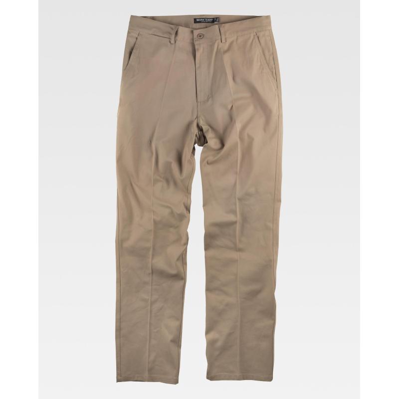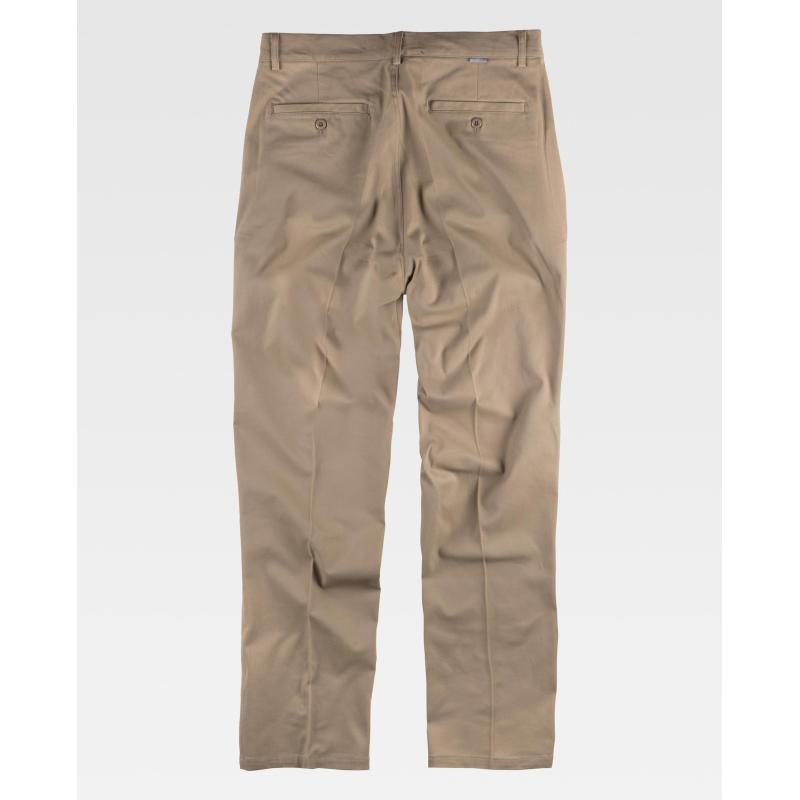 Pantalón tipo "Chino" en tejido elástico. Dos bolsos de abertura inclinada en los costados y un bolsillo relojero. Dos bolsos traseros interiores con cierre de ojal y botón. Trabillas. Cierre de botón y bragueta de cremallera. 98% Algodón 2% Elastano
