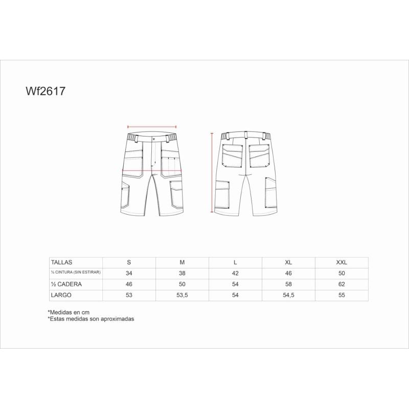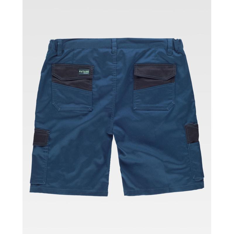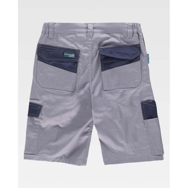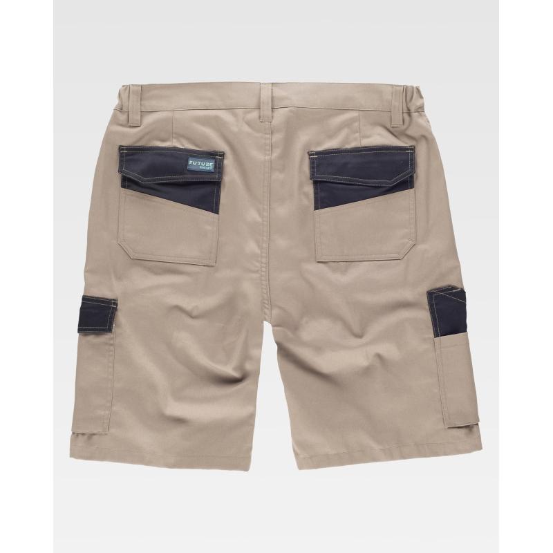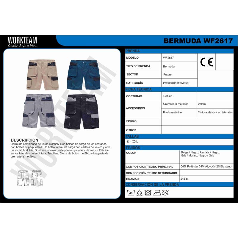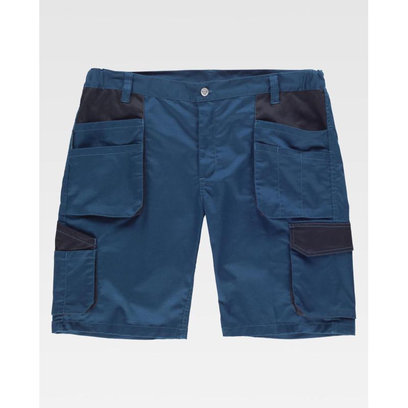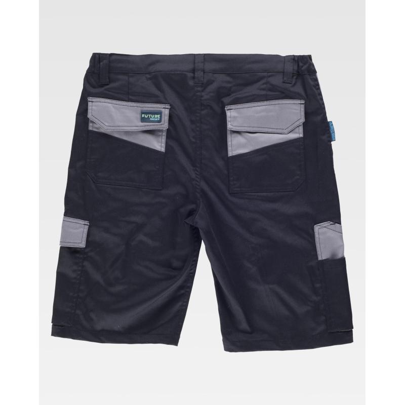 Bermuda combinada de tejido elástico. Dos bolsos de carga en los costados con bolsos superpuestos. Un bolso lateral de carga con cartera de velcro y otro de espátula doble. Dos bolsos traseros de plastón y cartera de velcro. Elástico en los laterales de la cintura. Trabillas. Cierre de botón metálico y bragueta de cremallera metálica. 64% Poliéster 34% Algodón 2% Elastano