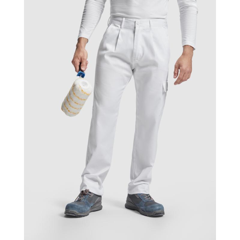 Pantalón largo.· Tejido resistente.· Cintura engomada en la parte trasera con trabillas.· Dos pinzas bajo las dos trabillas delanteras.· Dos bolsillos frontales a la cadera.· Un bolsillo plaqué trasero.· Un bolsillo plaqué con tapeta y cierre de velcro en la pierna izquierda.· Un bolsillo alargado en la pierna derecha para herramientas.· Etiquetado Roly WRK exterior.