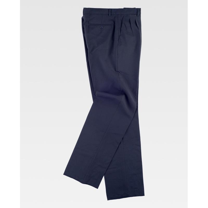 Pantalón recto de vestir para hombre con pinzas. Dos bolsos de abertura inclinada en los costados. Un bolso trasero interior con cierre de ojal y botón. Trabillas. Cierre de botón y bragueta de cremallera. Su composición en poliéster 100% asegura la estabilidad dimensional a la prenda. 100% Poliéster
