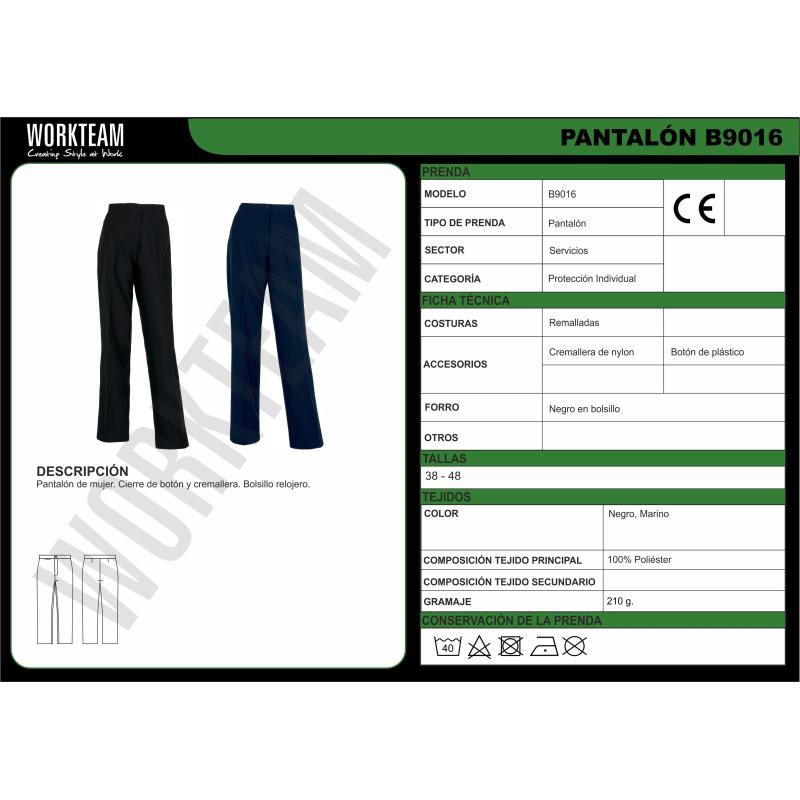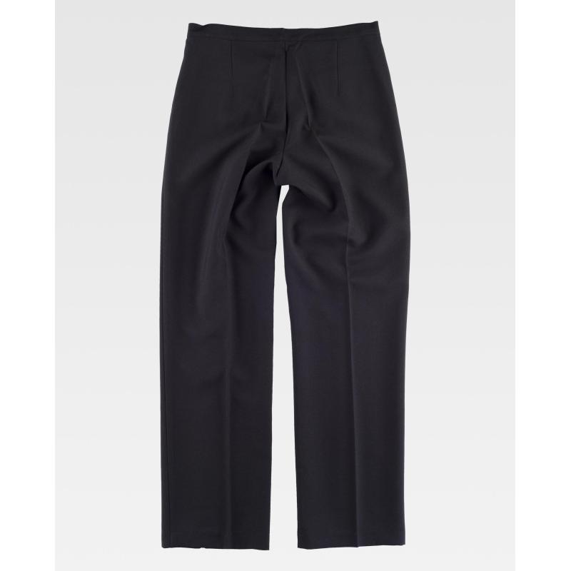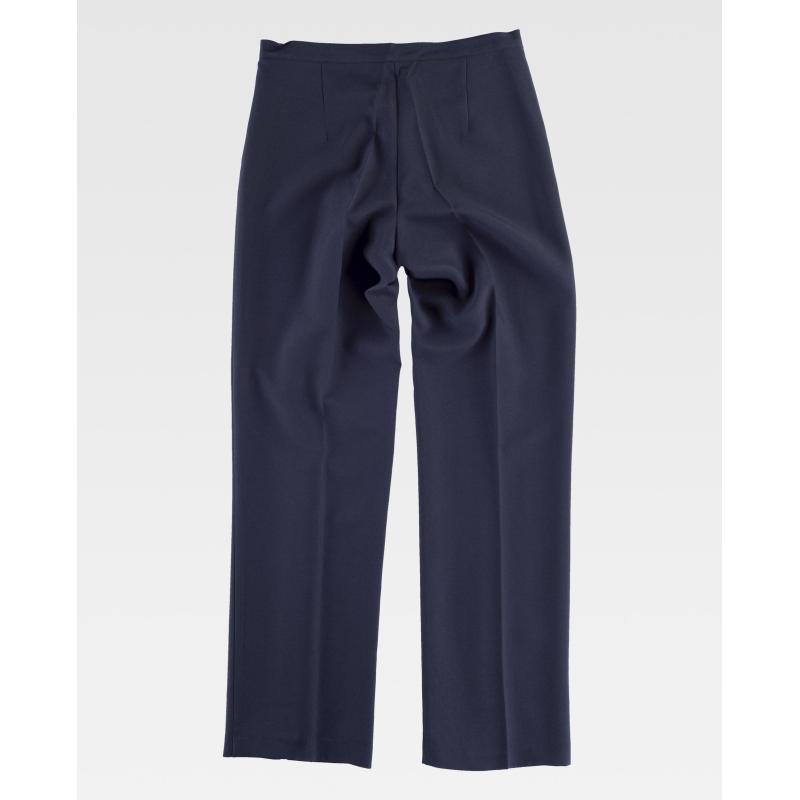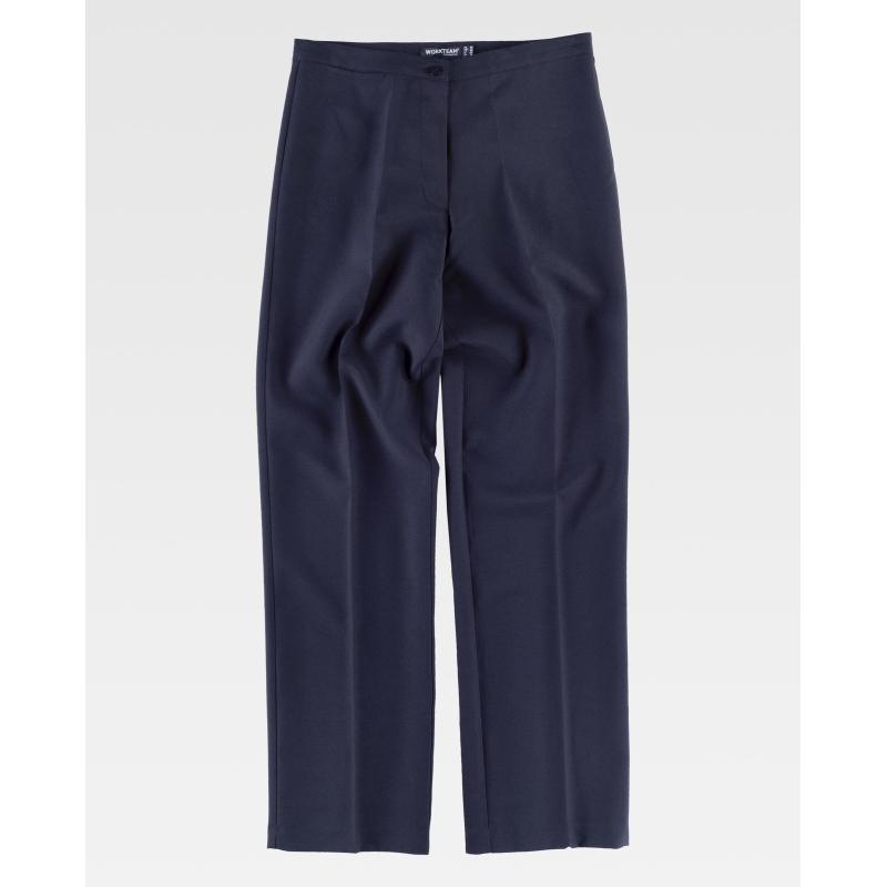 Pantalón recto de vestir para señora. Bolsillo relojero. Pinzas en la espalda. Cierre de botón y bragueta de cremallera. Su composición en poliéster 100% asegura la estabilidad dimensional a la prenda. 100% Poliéster