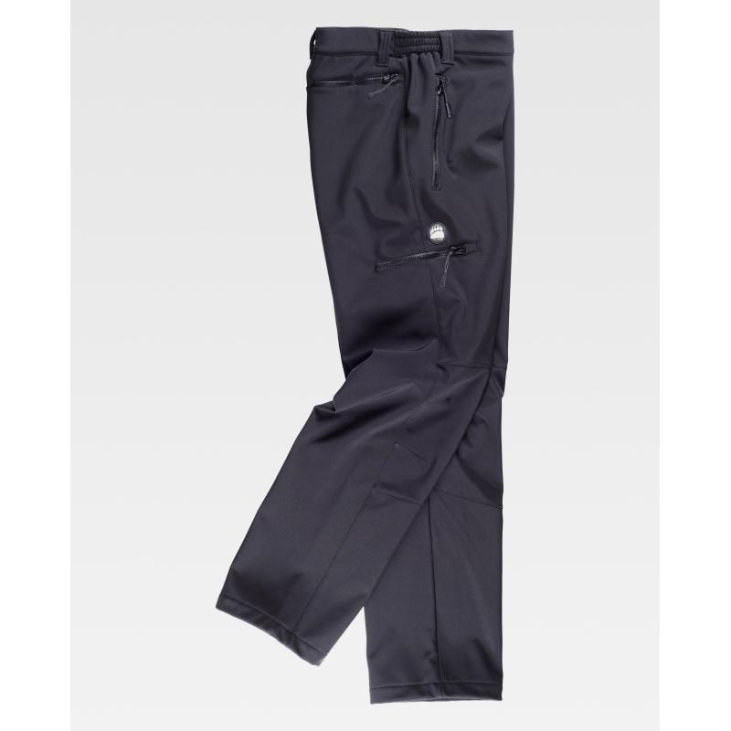 Pantalón Workshell de corte estilizado, diseño "Slim Fit". Dos bolsos de abertura vertical en los costados, un bolso lateral y dos bolsos traseros, todos interiores con cierre de cremallera. Cortes decorativos y pinzas en rodillas. Elástico en los laterales de la cintura. Trabillas. Cierre de corchete y bragueta de cremallera. Tejido corta vientos, repelente al agua y resistente al desgarro con membrana interior transpirable y aislante e interior de alta capacidad térmica. 96% Poliéster 4% Elastano