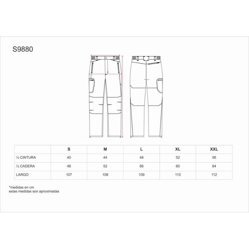 Pantalón combinado en mezcla de viscosa con refuerzos. Dos bolsos de abertura vertical en los costados, un bolso lateral de plastón y un bolso trasero interior, todos con cremalleras combinadas de cierre invertido. Rodilleras reforzadas. Bajos con cordón elástico y pieza ajustable. Cortes decorativos y presillas a contraste. Elástico en los laterales de la cintura. Trabillas anchas. Cierre de corchete y bragueta de cremallera. Tejido resistente que permite la transpiración. 65% Poliéster 35% Viscosa