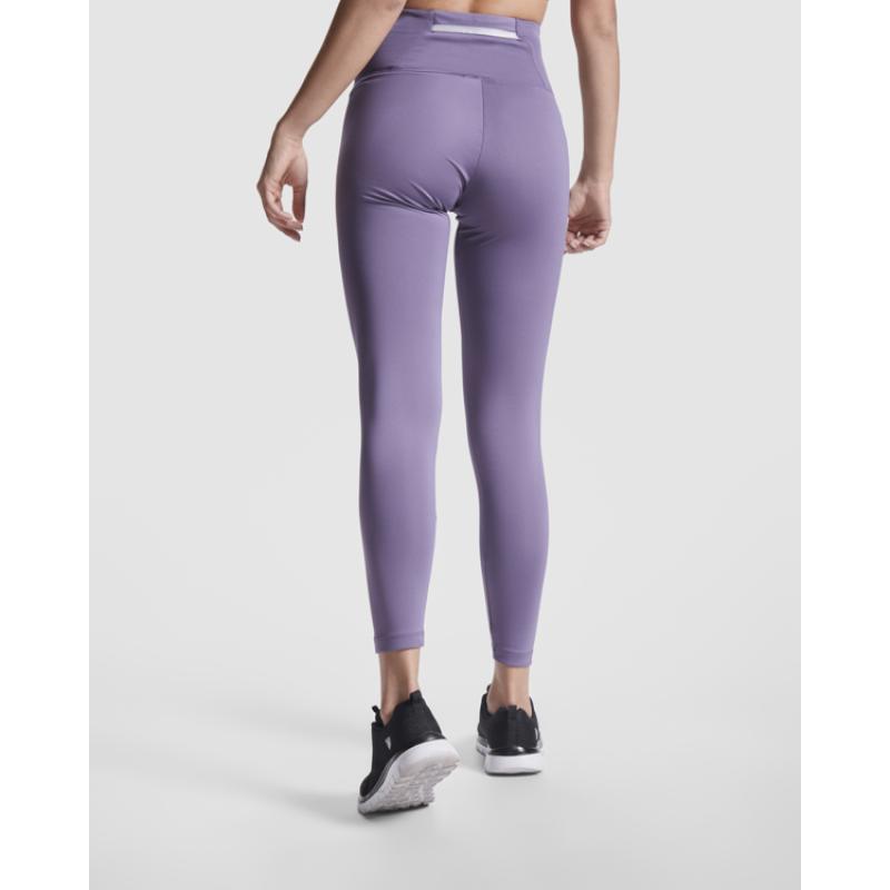 Legging deportivo tobillero de cintura ancha. Bolsillo trasero en cinturilla con banda reflectante. Pieza en cruce interno del tiro. Costura overlock a tono en cintura. Logo Roly reflectante en lateral de cintura.
