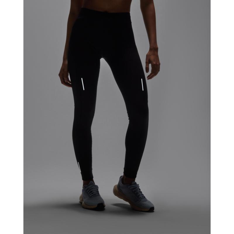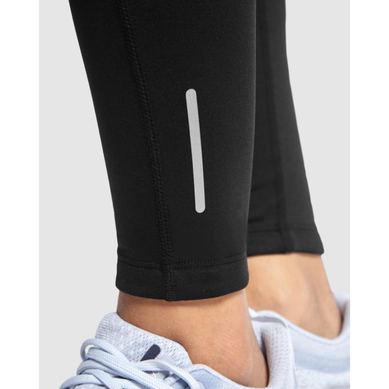Malla larga running mujer transpirable. Cinturilla engomada con cordón cruzado ajustable. Detalles reflectantes. Mini bolsillo trasero.