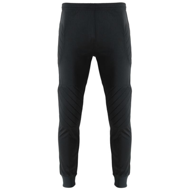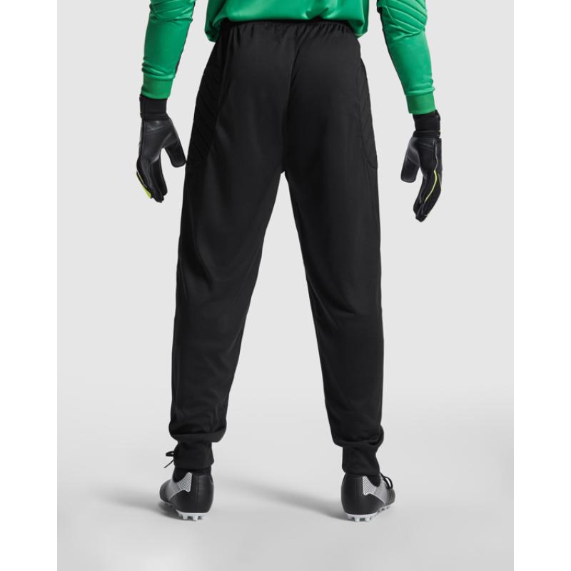 Pantalón largo de portero transpirable. Paneles laterales acolchados. Cintura engomada y cordón de ajuste. Rib 1x1 en tobillos.