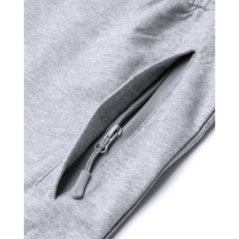 Pantalón largo recto de felpa no perchada básico. Bolsillos laterales con cremallera en tallas de adulto. Cinturilla engomada con cordón ajustable y ojales metálicos. Bolsillo trasero con cierre de velcro. Puños en rib 1x1.
