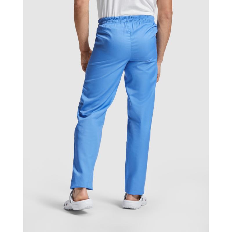 Pantalón sanitario con cintura engomada.· Cordón de ajuste del mismo tejido.· Dos bolsillos laterales a la cadera.· Etiquetado Roly WRK exterior.