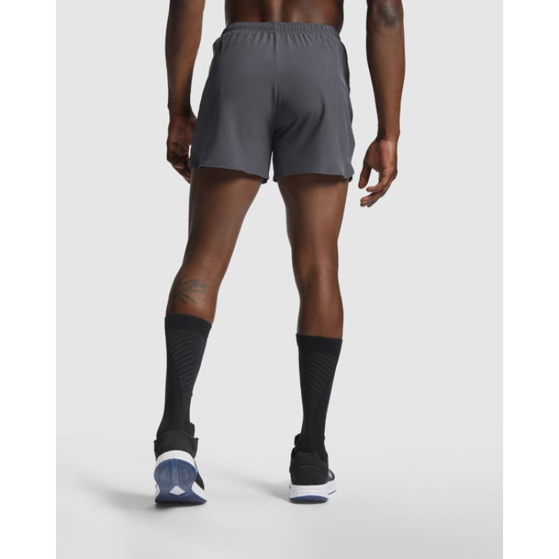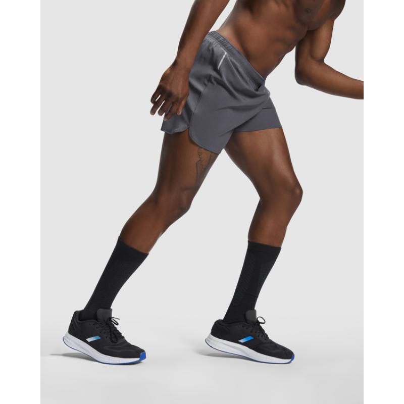 Pantalón corto running en tejido ligero y stretch. Slip interior. Cintura engomada y cordón ajustable cruzado. Detalles reflectantes en los laterales.