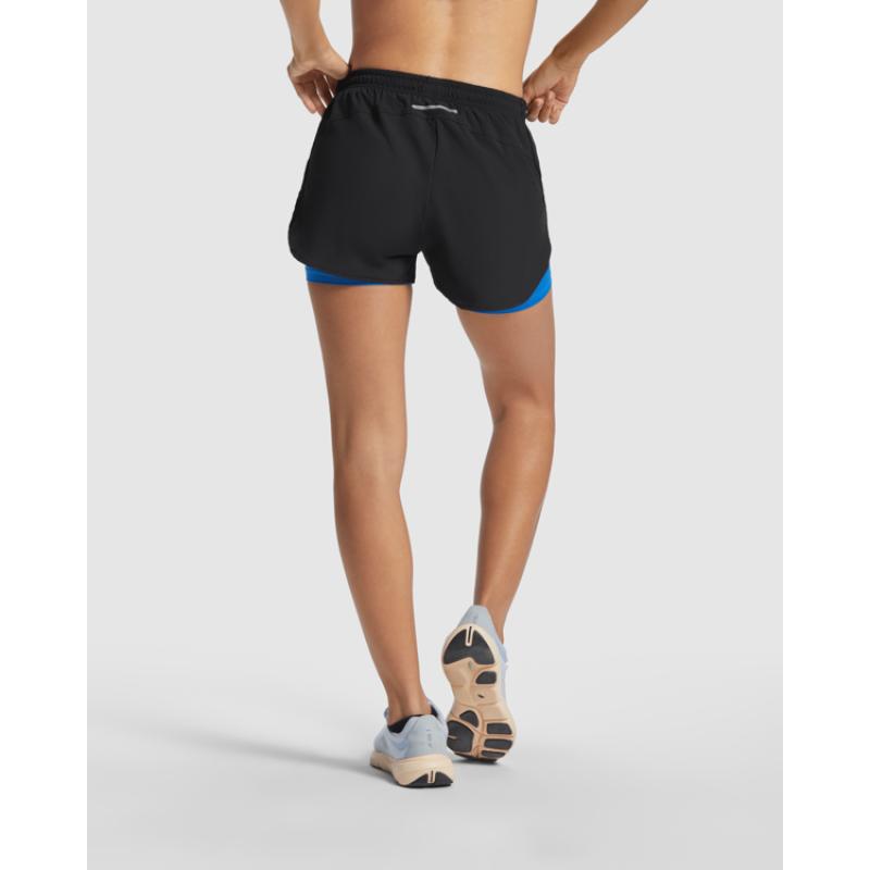 Pantalón corto running en tejido ligero y stretch. Malla elástica interior. Cintura engomada y cordón ajustable cruzado. Detalle reflectante en la parte trasera.