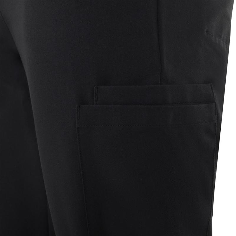 - Tejido elástico Spandex que absorbe la humedad- Tacto supersuave- Cintura de punto acanalado con cordón de ajuste- Talle medio- Pernera jogger con puños de canalé- Bolsillos delanteros con cremallera- Bolsillo trasero de parche- Un bolsillo cargo doble- Tejido antimanchas- Entrepierna: Regular 73,7 cm, Petite 68,6 cm, Tall 78,7 cm
