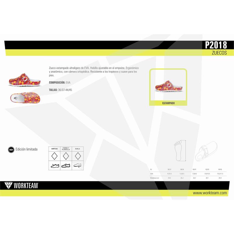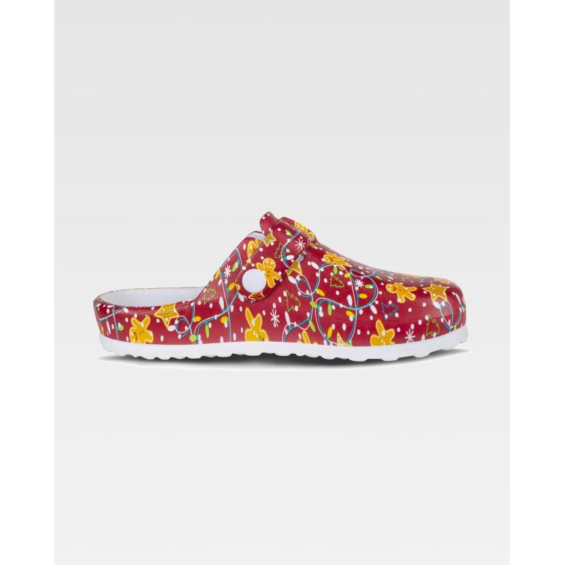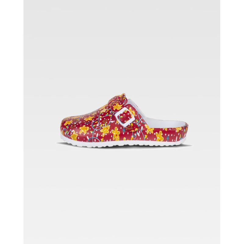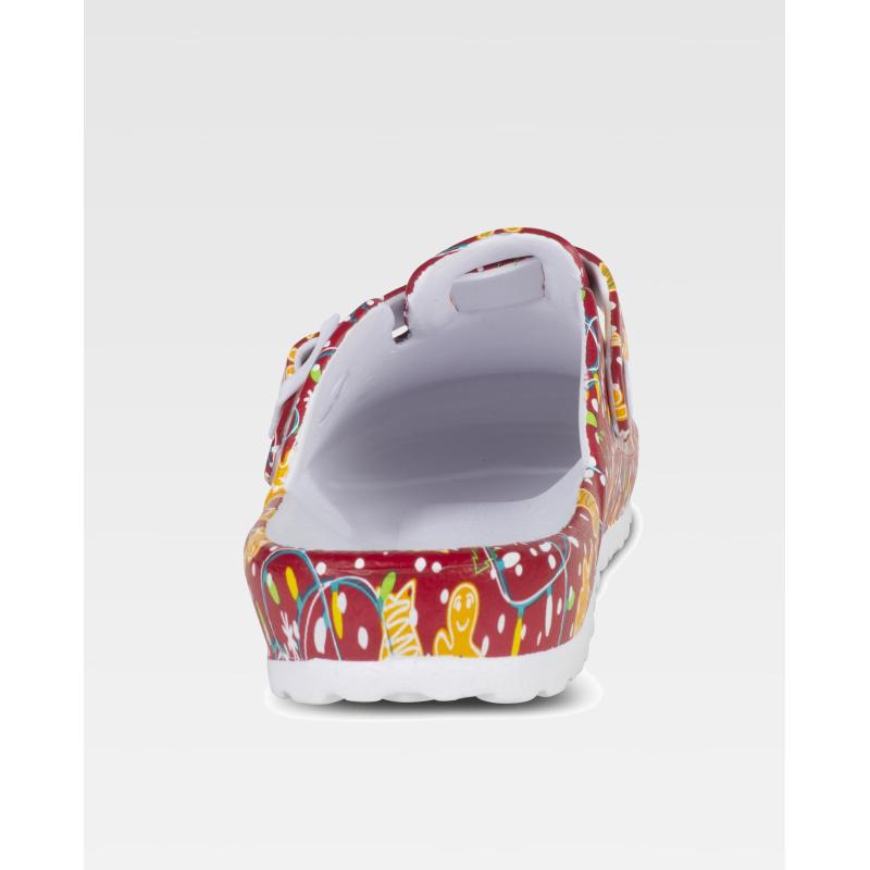 Zueco estampado ultraligero de EVA. Hebilla ajustable en el empeine. Ergonómico y anatómico, con cámara ortopédica. Resistente a los tropiezos y suave para los pies. EVA