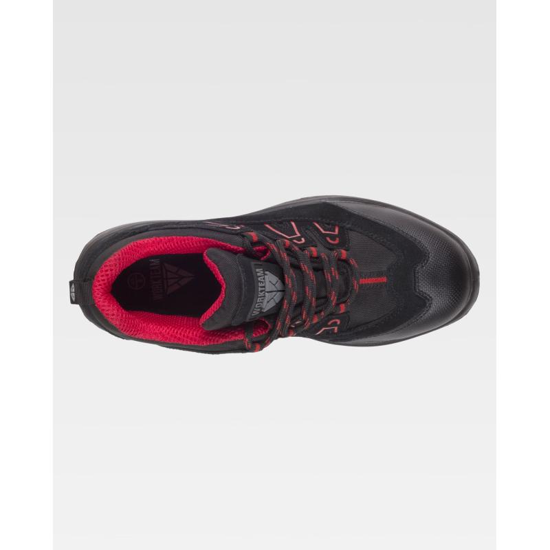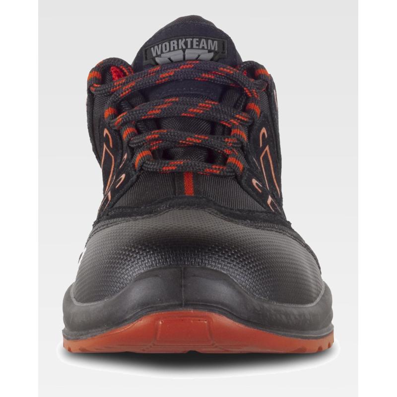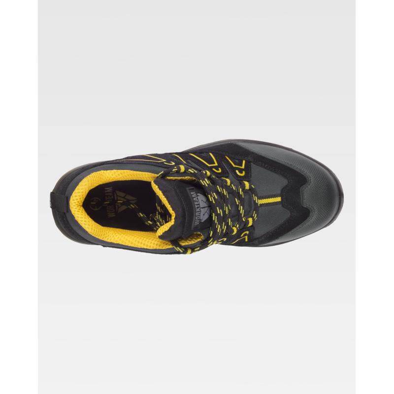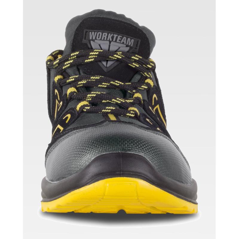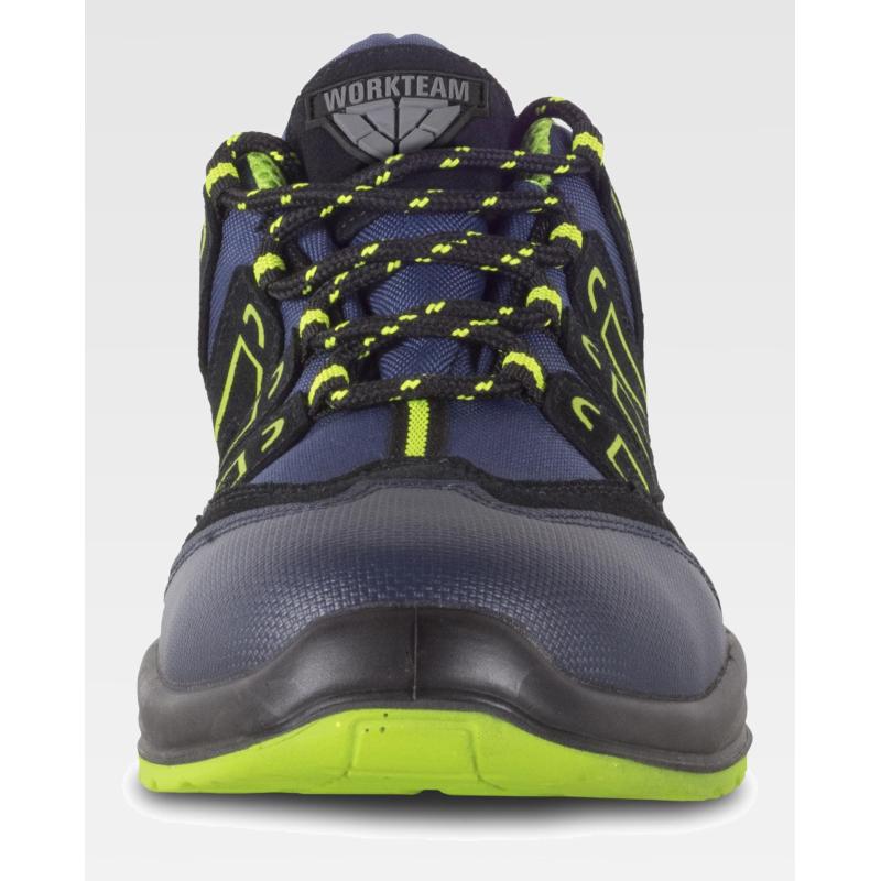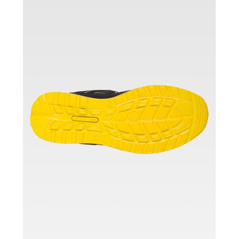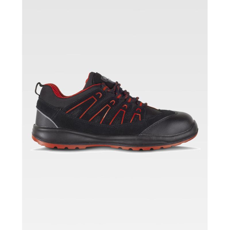 Zapato combinado y con cordones. Libre de metal. Detalles reflectantes. Suela PU bidensidad combinada en dos colores. Trabilla para tirar en la parte superior del talón para mayor comodidad al ponérsela. Paneles laterales combinados con capas superpuestas. Puntera de composite anti impactos y plantilla textil antiperforación. Propiedades antiestáticas. Absorción de la energía en la zona del tacón. Resistente a los hidrocarburos. Resistente a la perforación. Resistencia al deslizamiento sobre baldosa cerámica con disolución de jabón y acero con glicerina. S1P SRC. Piel / Nylon / Poliéster / PU