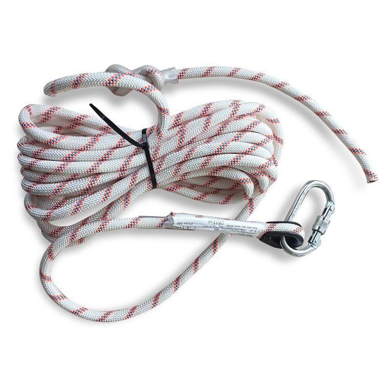 Características: Cuerdas de línea de vida verticales de 12mmØ de 50 metros, con mosquetón acero rosca y guardacabos.