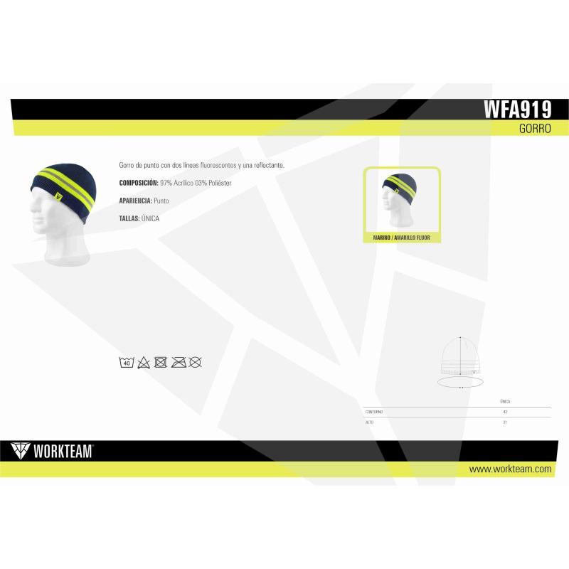 Gorro de punto con dos líneas fluorescentes y una reflectante. 97% Acrílico 3% Poliéster