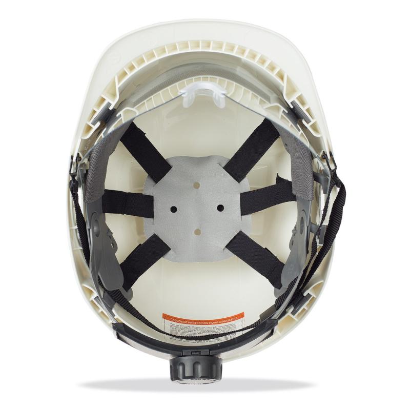 Arnés interior textil con banda antisudor y arnés en tela con 8 puntos de anclaje.