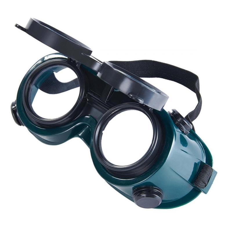Oculares abatibles e intercambiables. Cristal verde inactínico tono 5 (50mm diámetro). Permiten protección radiación infrarrojo soldadura, y levantar el ocular para ver la pieza soldada.