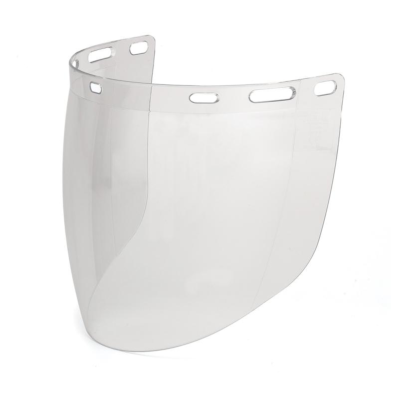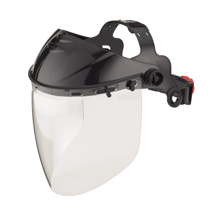Visor incoloro de policarbonato de alta resistencia mecánica, química y eléctrica. Protege contra impactos de partículas a gran velocidad y a temperaturas extremas de media energía (BT). Contra salpicaduras de líquidos (3). Contra salpicaduras de metales fundidos y sólidos calientes (9). Contra un arco eléctrico de cortocircuito (8). Contra radiaciones UV EN170 (2-1,2). Calidad óptica clase 1. Protección ocular de la pantalla 180º. Visor abatible de 400 mm (ancho) X 205 mm (largo).