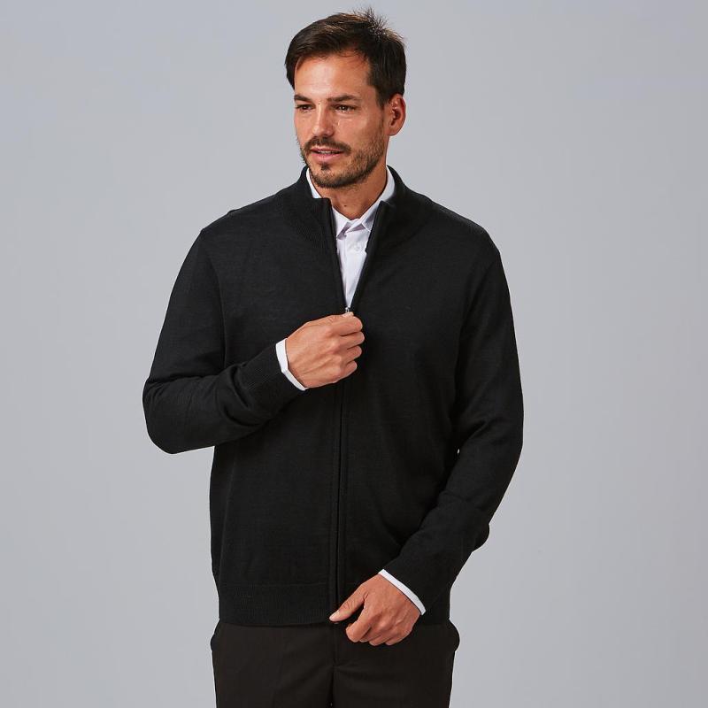 A pesar de su punto fino, esta rebeca mantiene un aspecto elegante y sofisticado que es adecuado para diversas profesiones y entornos laborales. El cuello de canalé y la cremallera frontal añaden un toque moderno y funcional al diseño.