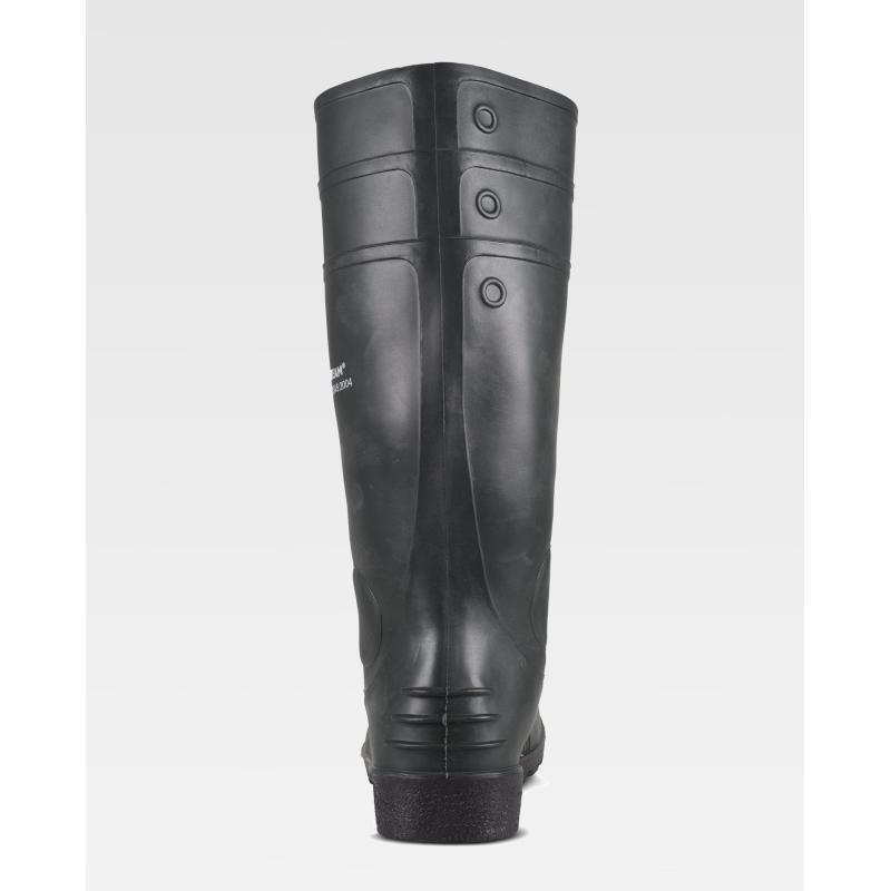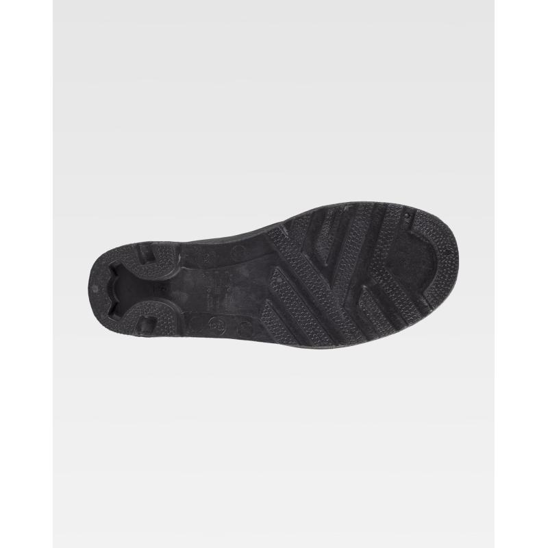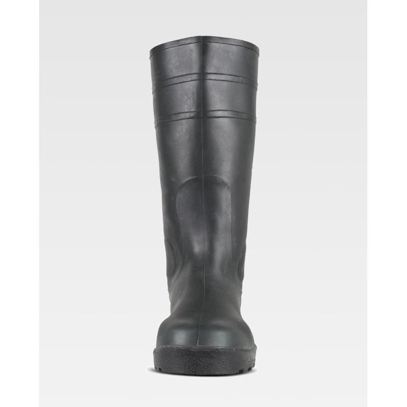 Bota pocera verde. Nitrilo y PVC. Puntera y plantilla de acero. Propiedades antiestáticas. Absorción de la energía en la zona del tacón. Resistente a los hidrocarburos. Resistente a la perforación. Resistente al deslizamiento sobre baldosa cerámica con disolución de jabón. S5 SRA Nitrilo / PVC