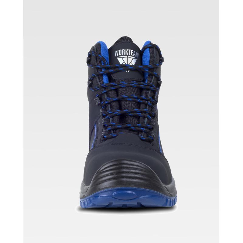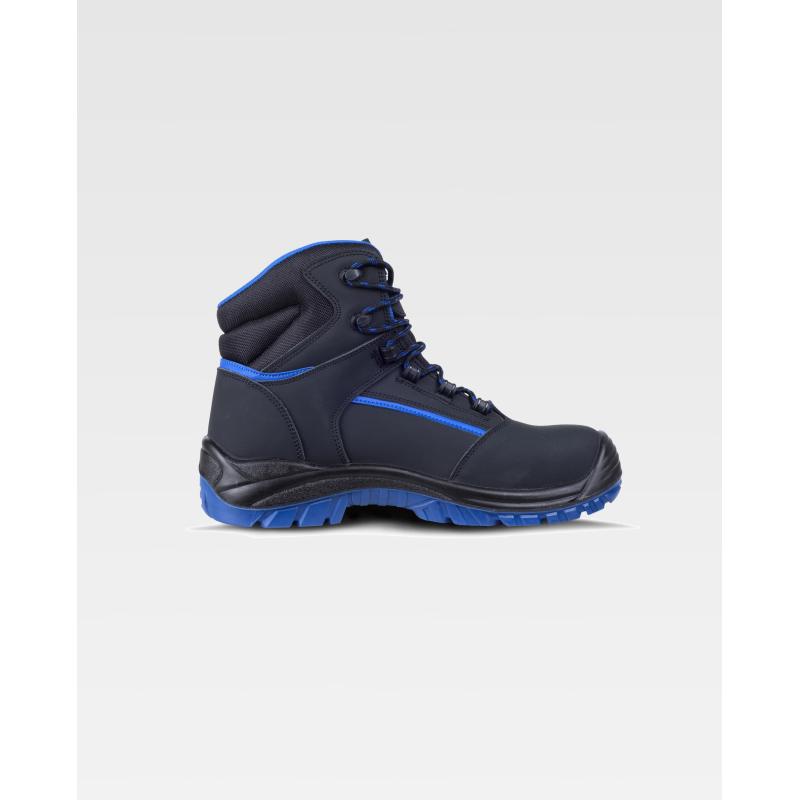 Bota de piel de nobuk con cordones. Libre de metal. Con descarga electrostática ESD. Suela PU bidensidad combinada en dos colores. Puntera de composite anti impactos y planta textil antiperforación. Plantilla de eva acolchada para mayor comodidad. El calzado antiestático ESD proporciona protección para el operario, así como para los componentes o dispositivos electrónicos sensibles que son manipulados por éste. Absorción de la energía en la zona del tacón. Resistente a los hidrocarburos, a la penetración y la absorción del agua. Resistente a la perforación. Suela con resaltes, resistente al deslizamiento. S3 SRC - ESD. Piel