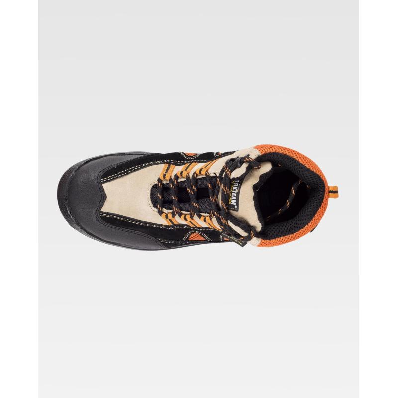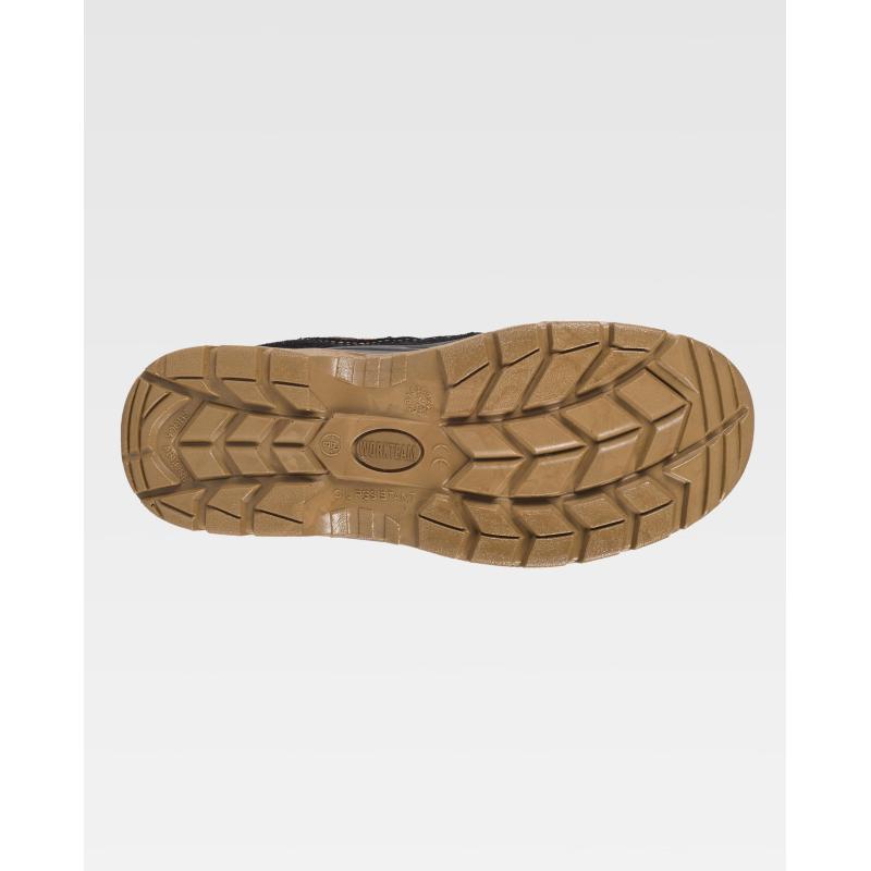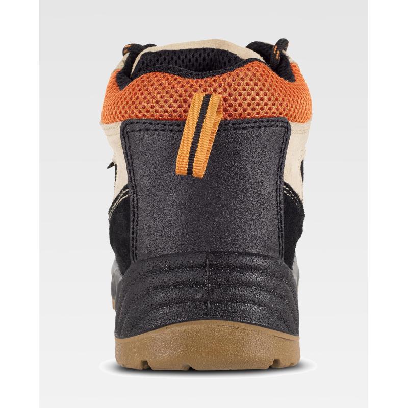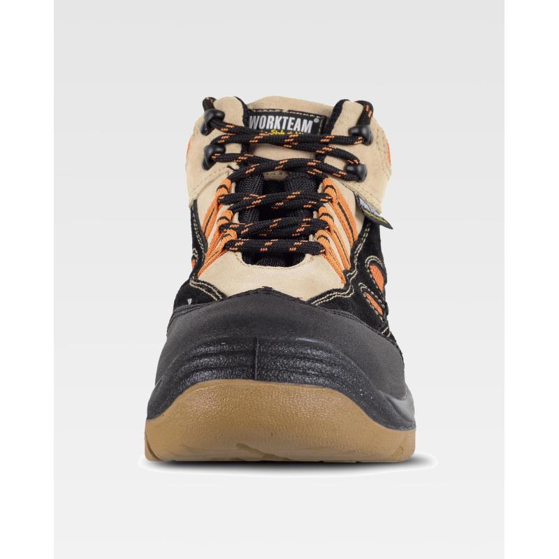 Bota serraje con cordondes, tipo treking. Puntera y plantilla de acero. Suela PU bidensidad. Propiedades antiestáticas. Absorción de la energía en la zona del tacón. Resistente a los hidrocarburos. Resistente a la perforación. Resistente al deslizamiento sobre baldosa cerámica con disolución de jabón y sobre acero con glicerina. Piel Serraje
