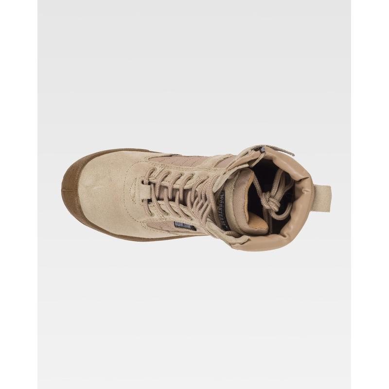 Bota de serraje con cierre de cremallera lateral y cordones. Tejido oxford acolchado en laterales y lengüeta, forradas con tejido de malla. Suela de PU bidensidad. Repelente al agua. Piel Serraje