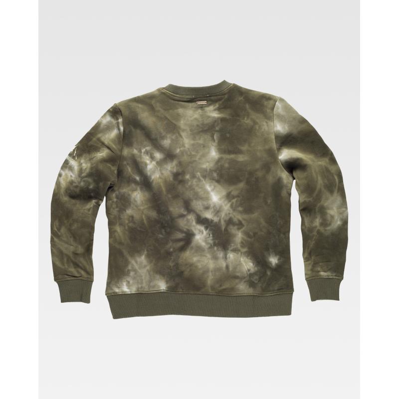 Sudadera TÎRA de mujer de cuello caja con estampado Tie Dye. Puños y bajo confeccionados en tejido elástico. Detalles de logo bordados en pecho y manga. Confeccionada en felpa de rizo, su textura interior resulta de lo más agradable. 100% Algodón
