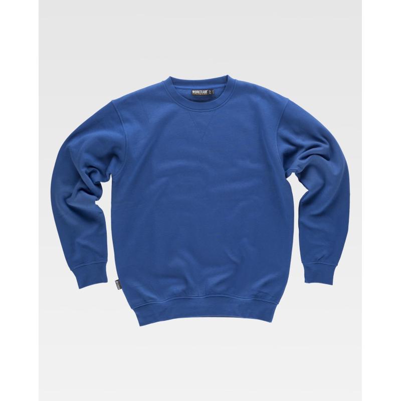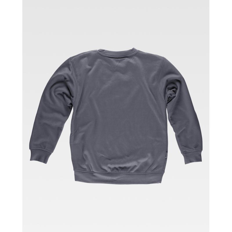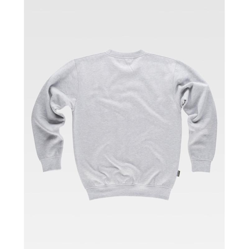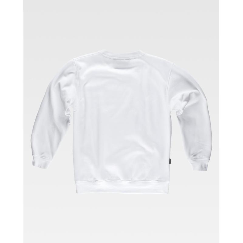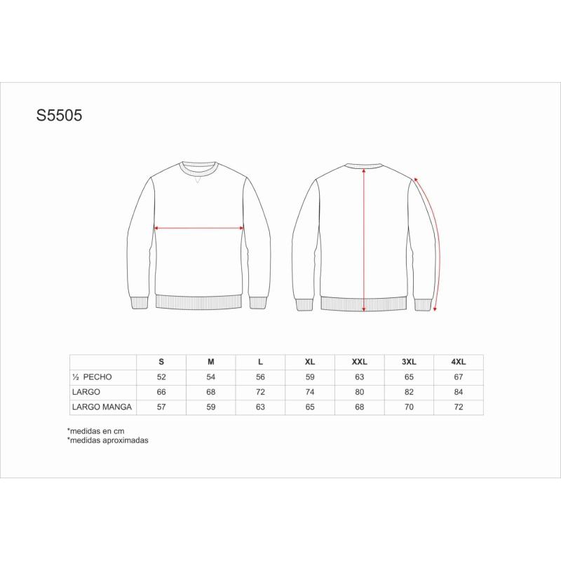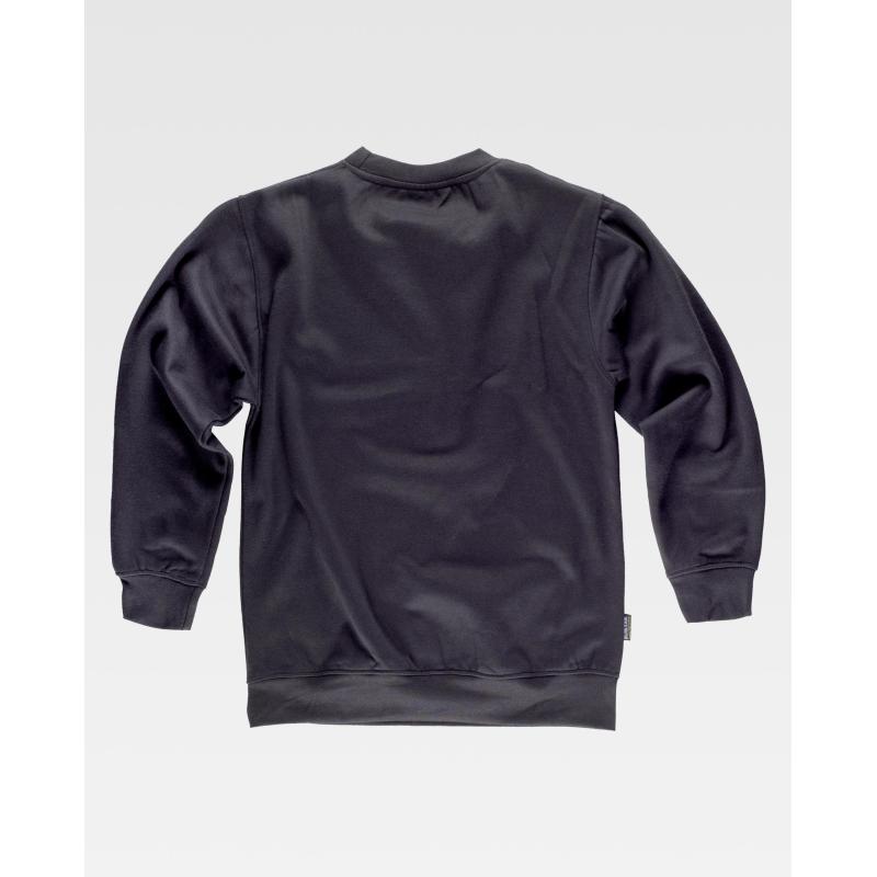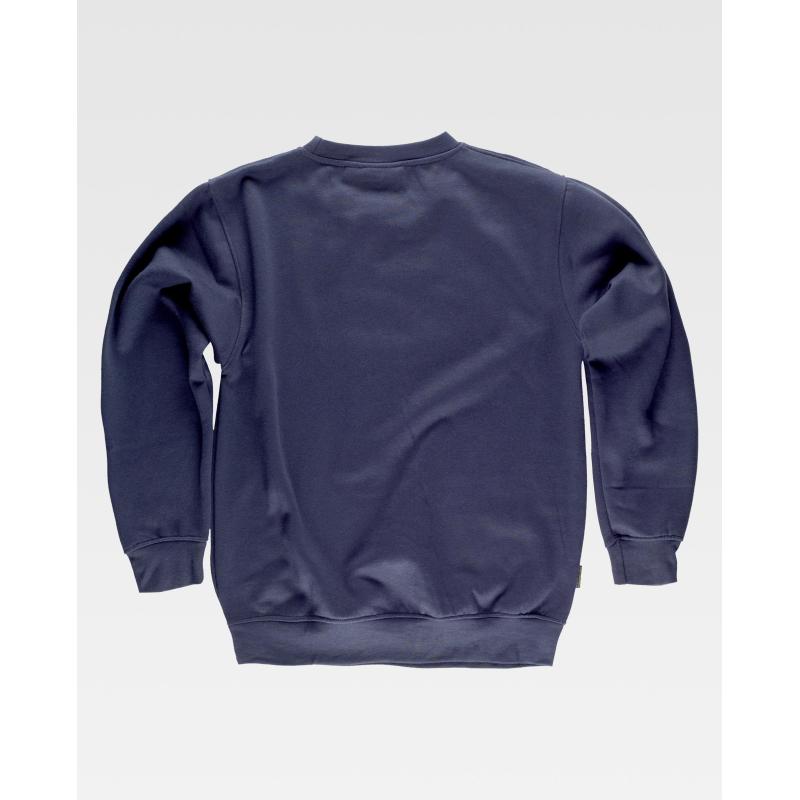 Sudadera clásica de cuello redondo con costura a pico de fantasía. Cubrecosturas en el interior del cuello y costuras reforzadas. Suave y cálido acabado interior. Cuello, puños y cintura elásticos en punto canalé. 65% Poliéster 35% Algodón