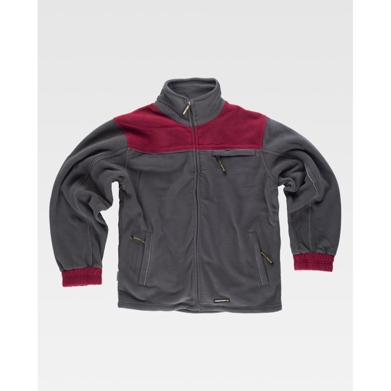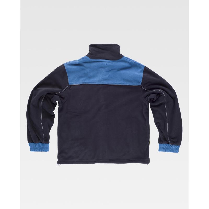 Chaqueta polar combinada con vivos reflectantes. Cuello alto y canesús con vivos a contraste que continuan en la manga. Cierre de cremallera de nylon. Un bolso de pecho y dos laterales interiores con cremallera de nylon. Puño con elástico. Cordón elástico con pieza ajustable en cintura. 100% Poliéster